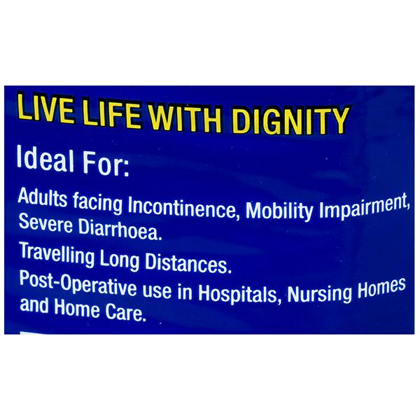• Dignity adult diapers provide advanced leakage protection with the help of distinctive acquisition distribution layer (Blue colour strip).