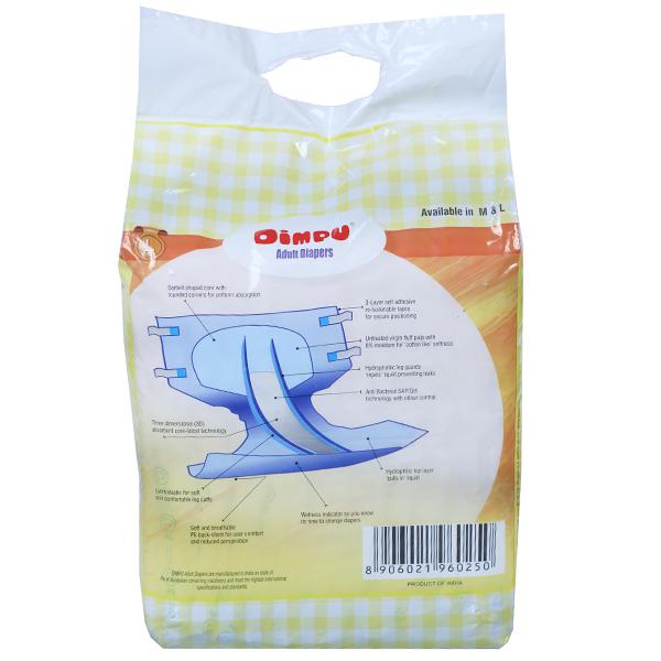PRODUCT INFORMATION - Dimpu Adult Diapers is one of the best diapers for adult incontinence - the inability to control over bladder and bowel. Ideal for patients suffering from prostate incontinence, disorder, piles, diabetics, bedridden, Urology patients, and disabled patients.