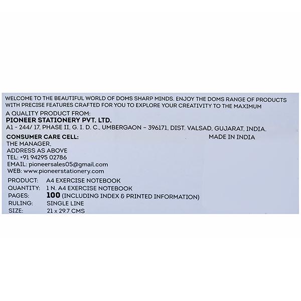 Doms Single Line A4 Exercise Notebook (21 x 29.7 cm) Art. No. 7851 100 Pages