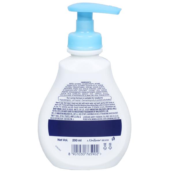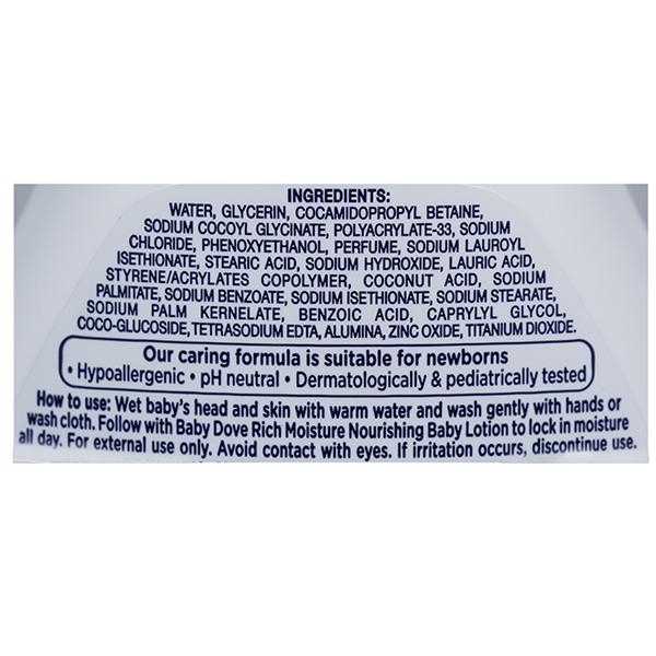 Mild and nourishing, Baby Dove Rich Moisture baby wash is ideal for daily use. Simply wet baby’s hair and skin with warm water and wash gently with your hands or a wash cloth.