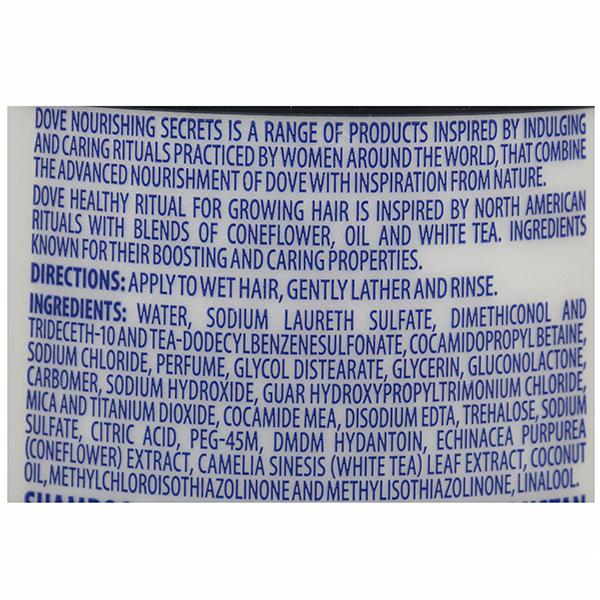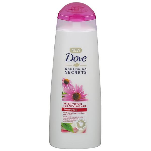 Product Information – Dove healthy ritual for growing hair shampoo repairs damage and prevents loss and split of hair.