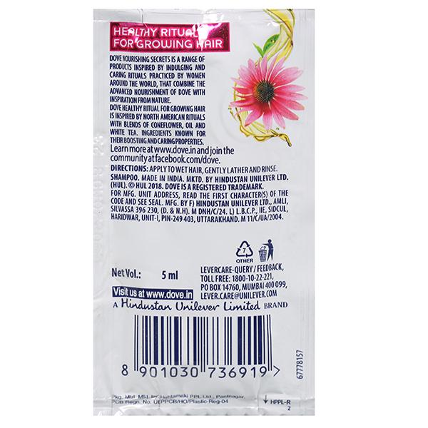 Product Information – Dove healthy ritual for growing hair shampoo repairs damage and prevents loss and split of hair.