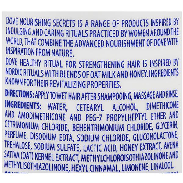Presenting a purposely crafted conditioner, new Dove Healthy Ritual for Strengthening Hair! This conditioner is inspired by the rituals of Nordic women and infused with the goodness of oat milk and honey; natural ingredients that are known for their nourishing and repairing properties. Dove borrowed this healthy ritual and created the new Healthy Ritual for Strengthening Hair. Combined with the superior care of Dove, the formula instantly smoothens out the hair surface, preventing frizz and keeps hair looking smooth and shiny. It works to reduce frizz, making hair appear smooth and controls fly away hair. Due to the strands being smooth, they detangle easily, minimising breakage and letting your hair look healthy and smooth. As long as hair is properly cared for, it can look its best. So, flaunt your smooth hair without the worries of frizz, by giving your hair the love it deserves! Buy the new Dove Healthy Ritual for Strengthening Hair shampoo and conditioner now! Strength due to reduced hair breakage, based on lab test with Dove system vs non-conditioning shampoo