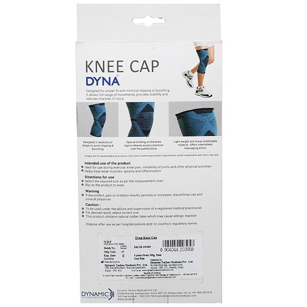 Dyna Knee Cap is anatomically contoured knee support with special knitting on the patella region for patella stability. Made of 4-way stretchable material which gives you a softer feel, and will not leave skin indentations. Dyna Knee Cap allows full range of movements, provides stability and reduces the chances of injury. Dyna Knee Cap not only relieves the knee pain but also helps you to regain mobility in a most comfortable manner.