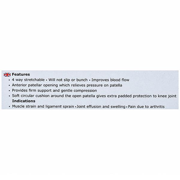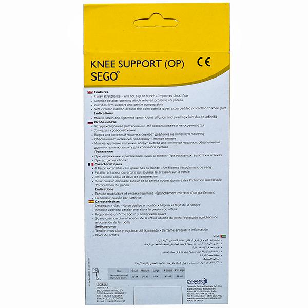 Sego Knee support with open patella is designed with a 4-way stretchable material. Improves blood flow and provides firm support and gentle compression. Its soft circular cushion around the open patella gives extra protection to the knee joint.