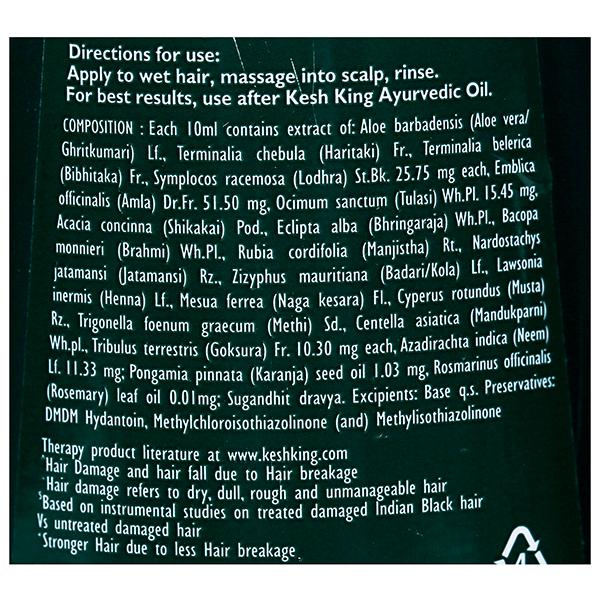 Product Information – Kesh King ayurvedic shampoo is a proven remedy for hair and scalp problems. It has been made by renowned ayurvedic experts with their extensive experience and rigorous study from aloe vera and 21 rare and precious ayurvedic herbs as per pure and authentic practices of Ayurveda. It nourishes hair from roots and helps in stopping hair fall, dandruff and dry hair making it silky, healthy and beautiful. Its gentle, herbal fragrance stays with you all day long.