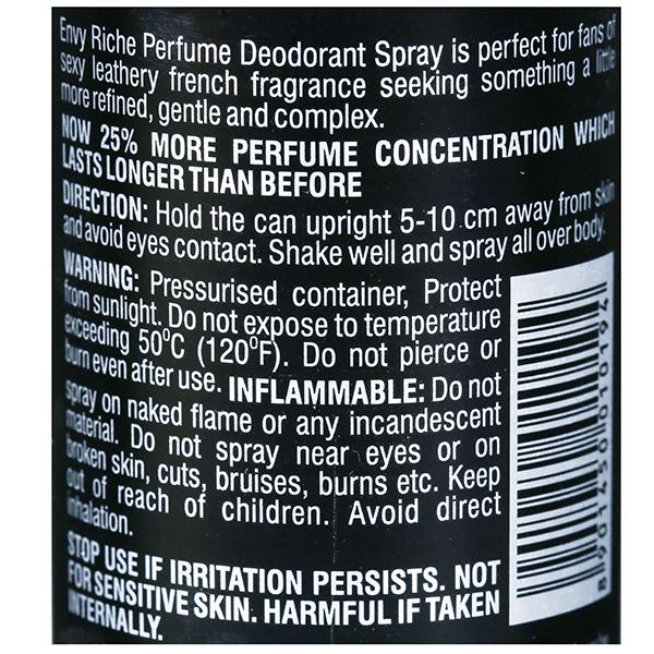 Envy riche perfume deodorant spray is perfect for fence of sexy, leathery french fragrance seeking something a little more refined, gentle and complex.