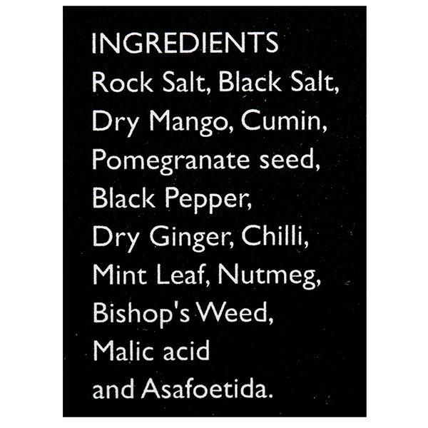 Asafoetida, Bishops Weed, Black Pepper, Black Salt, Caraway, Chilli, Clove, Coriander, Cumin, Dry Ginger, Dry Mango, Kachri, Malic Acid, Mint Leaf, Nutmeg, Pepper Long, Pomegranate Seeds, Rock Salt