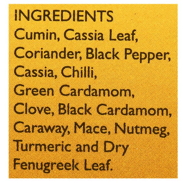 Black Cardamom, Black Pepper, Caraway, Cardamom, Cassia, Cassia Leaf, Chilli, Clove, Clove Leaf, Coriander, Cumin, Kasuri Methi, Mace, Nutmeg, Turmeric