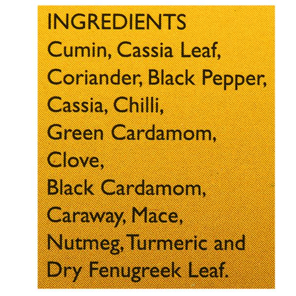 Black Cardamom, Black Pepper, Caraway, Cardamom, Cassia, Cassia Leaf, Chilli, Clove, Clove Leaf, Coriander, Cumin, Kasuri Methi, Mace, Nutmeg, Turmeric