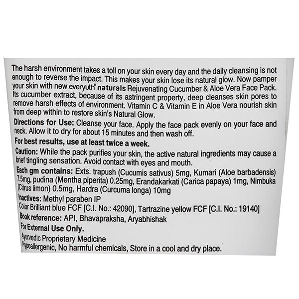 Try Everyuth Naturals Skin Firming Cucumber Face Pack with Nano Multi-Vita and Cucumber Extracts. The harsh surroundings takes a toll in your pores and skin on a regular basis, just washing your face wont help to get rid of the dirt accumulated in the pores. Now pamper your pores and skin with this face pack. Its cucumber extract, on account of its astringent belongings, deeply cleanses pores to take away harsh results of surroundings while Vitamin C and Vitamin E in aloe vera nourish pores and skin from deep inside to revive its herbal glow.