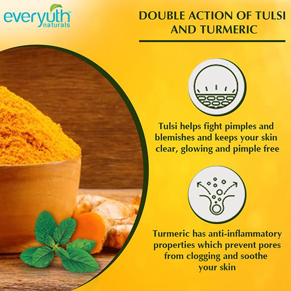 Product Information - Everyuth Anti Acne Anti Marks Tulsi Turmeric Face Wash is clinically proven to act against pimples and marks. Enriched with the natural goodness of Tulsi, Turmeric, Brahmi, Willow Bark Extracts & Tea Tree Oil which effectively reduces pimples, marks, blemishes & dark sports too. Pamper your skin with everyuth naturals face wash to keep it clear, glowing, pimple-free, blemish-free & flawless.