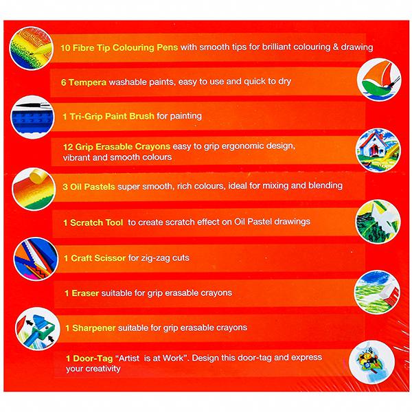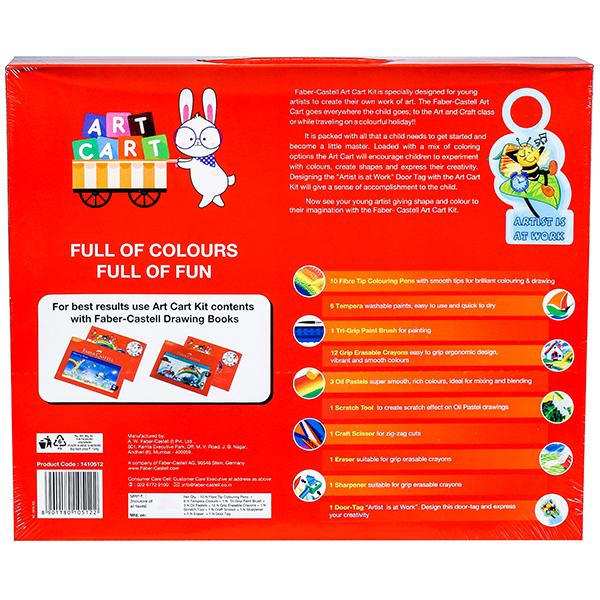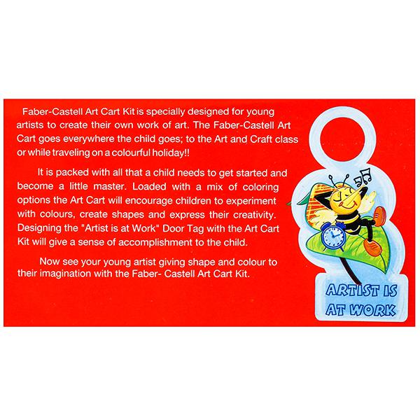Attractive colouring kit for little artist. Paper door tag inside the pack. Assortment of dry & wet colours contains :12 Erasable Crayons, 3 Oil Pastels, 10 Water Colour Pens, 6 Tempera Colour, 1 Paint Brush, 1 Scratch tool, 1 PVC Free Eraser, 1 Sharpener, 1 Craft Scissors. Now all you need is a drawing pad and your imagination. So go on and get this creative experience with your child soon! This Art Cart from Faber Castell is the perfect gift for any child. So go on and add this to your shopping cart. You wont regret this!