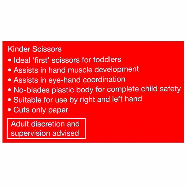 Product Information – Ideal "first" scissor for toddlers. Assists in hand muscle development and eye hand coordination. No blades plastic body for complete child safety. Suitable for use by right and left hand. Cuts only paper.