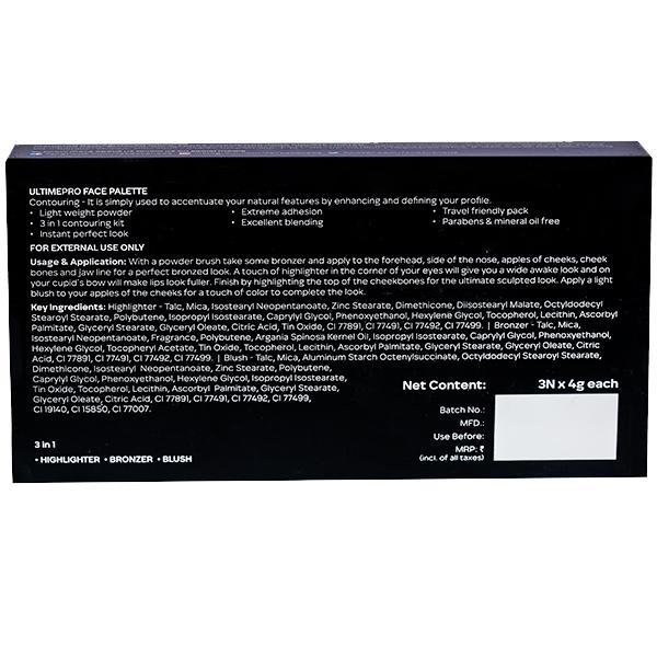 Enhance your facial features in style! Faces bring to you an enchanting 3-in-one face palette that allows you to contour, highlight, and complement your most beautiful facial features along with giving a flawless radiance to your face. Faces Ultime Pro Face Palette includes a lovely bronzer, highlighter, and blush, all in compact travel-friendly packaging, making it an essential in your vanity bag! The light shimmery blush and illuminator has a silky-smooth texture and adds a natural glow to your face while the bronzer sculpts your face, gives a luminous glow to your face resulting in a healthy complexion.
