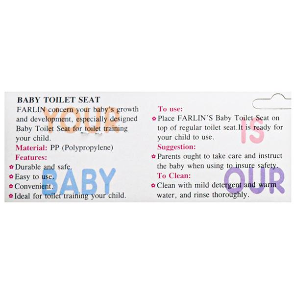Farlin concern your baby’s growth and development, especially designed baby toilet seat for toilet training your child. It can be placed on top of regular toilet seat also. It has a front shield to block the urine for more hygiene. This potty is made of high-quality plastic: smooth edge, will not hurt the skin of a baby. To sum up, Farlin toilet seat is a safe child-friendly product.
