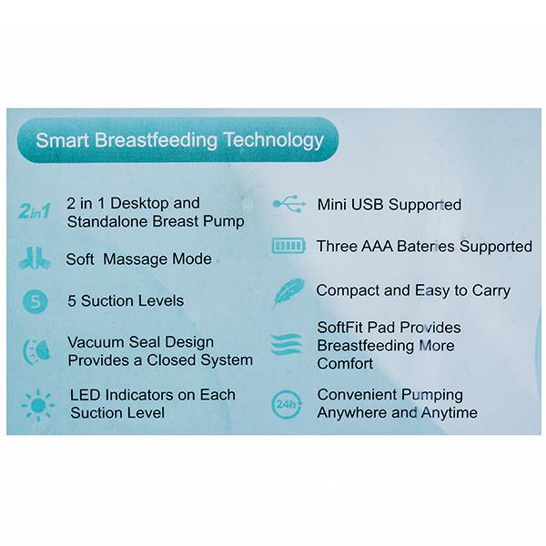 Product Information – One Farlin 2 In 1 Electric Breast Pump KitThe Farlin breast pump electric kit is sure to make your life easier. This pump kit is not only easy to use, but also convenient to clean. It imitates your baby's suckling action to ensure optimum milk flow at all times. With a unique AC-DC function, this breast pump kit allows you to conserve on energy as well. You can conveniently sterilise the bottle and breast shield whenever you need to. Attach this pump against your breast to express milk with ease even as you continue with your daily activities like surfing the net or reading. Buy this Farlin breast pump kit to express and store breast milk with optimum ease.