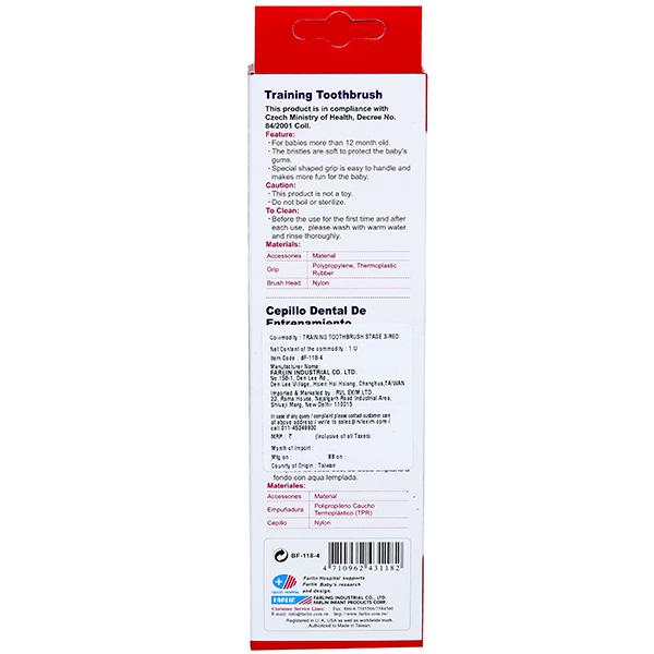 Product Information - Now you can give your baby the freedom to brush their teeth on their own with the special Farlin Baby toothbrush. Suitable for babies aged 1 year and above the Farlin Baby Toothbrush has soft bristles that are gentle on your baby’s sensitive gums and teeth and effectively cleans away plaque. This brush has an easy-to-grip handle that makes it easy for your little one to use and direct the brush. Brushing becomes easy and fun with the Farlin Baby Toothbrush and it also helps your baby learn to take dental hygiene seriously and incorporate it into their lives as they grow older.
