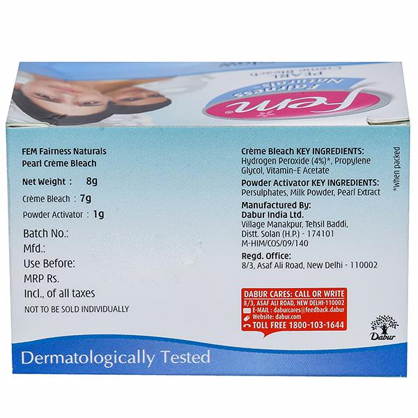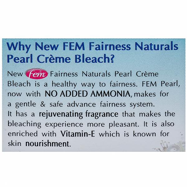 Product Information - Enriched with Real Pearl Essence and Milk, FEM Fairness Naturals Pearl Crème Bleach it gives you a pearl like glow. Specially formulated for Wheatish/Dusky Complexion.