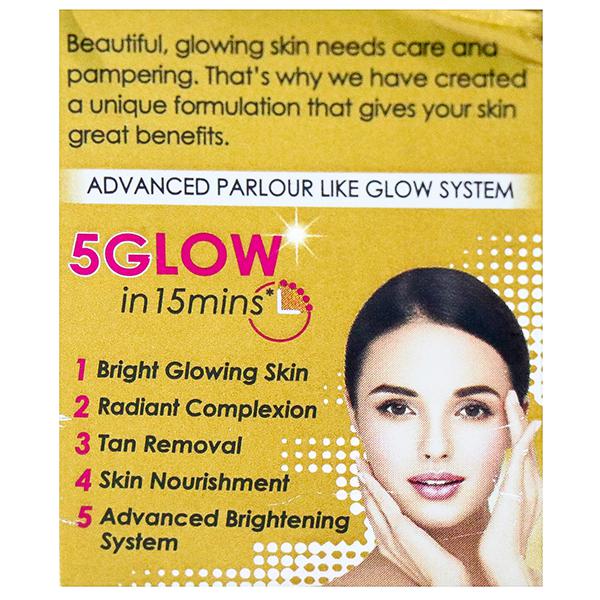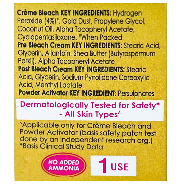 Add a golden glow to every occasion. The unique 3-step action of its Ultra Pre-bleach creme, Ultra Bleach Mix with Real Gold Dust and Ultra Post-bleach creme gives instant radiance to your skin. Go ahead and make your special occasions a golden memory with parlour like glow in minutes.