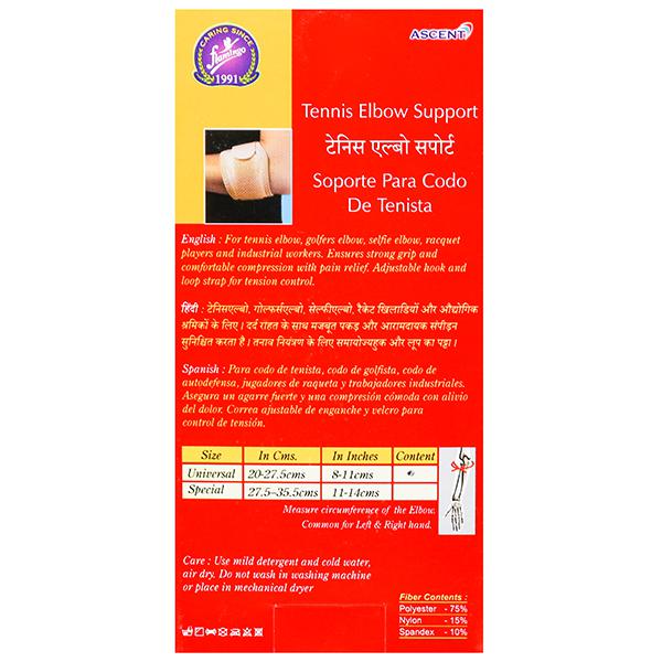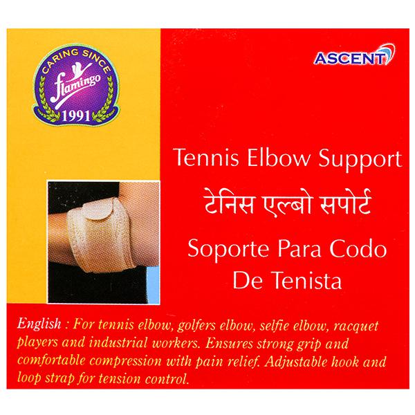 Elbow joint is made up of bone, cartilage, ligaments and fluid. Muscles and tendons help the elbow joint move. The types of disease most commonly seen at the elbow are tendonitis, fractures, infection and arthritis. Most common injuries at the elbow are overuse injuries: tendonitis, tennis elbow and Golfer's elbow. Tennis elbow is a condition where the outer part of the elbow becomes painful and tender. Golfer's elbow is the inflammatory conditions where inner part of elbow becomes painful and tender. Tendonitis of the elbow is a sports injury that arises due to overuse of the elbow. Other causes of elbow pain include sprains, strains, fractures, dislocations, bursitis and arthritis. Treatment depends on the cause. Provided with adjustable hook and strap for tension control. It is recommended for conditions like Osteoarthritis, post elbow Arthroscopy, chronic swelling and oedema, targeted relief from forearm pain, tennis elbow, Golfer’s elbow pre and post-operative elbow conditions. Flamingo Tennis Elbow Support (with pressure pad) gives you a great relief.