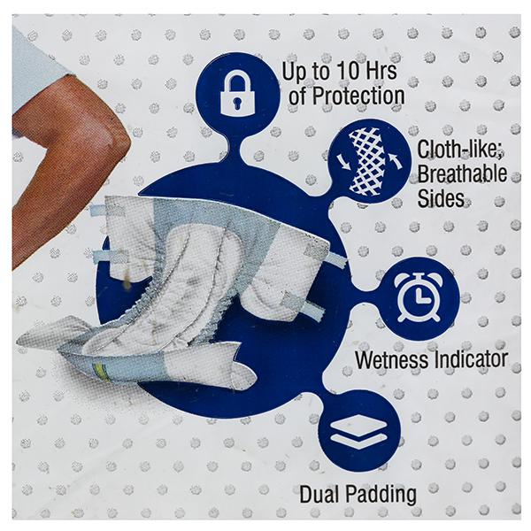 This adult disposable diaper offers the perfect solution to the problem of incontinence or the inability to exercise control over the bladder & the bowel. These diapers offer undisputed solution to all adult requirements and are made adhering to the highest product quality standards. They are ideal for patients suffering from prostate disorder, piles, incontinence, diabetics, urology issues, bedridden and also disabled patients. It has non-woven one way top to guide the fluid into the absorbent pad & prevents it from flowing back. It has superior absorbency with polybeads that turns fluid into gel. Hence the users feel dry & comfortable for long hours. It has frontal tape with landing guide and two pairs of refastenable tape tabs that allows repeated adjustments of tape tabs for new users and guides proper positioning of tape tabs for regular users. It allows multiple adjustments and refastening on the frontal tape. It has multistrand leg elastic for comfortable snug fit without pinching on skin. It prevents leakage in the crotch area. It has standing leak guard that offers unique maximum protection against leakage. Furthermore, it stops urine or faeces flowing towards the elastic.