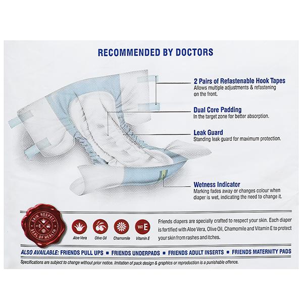 Friends Adult Diapers is an effective way to deal with the problem of elderly incontinence and the inability to exercise control over the bladder & the bowel. They are a blessing for people suffering from Prostate or Urology disorders, Piles, Incontinence, Diabetes, or even patients who are bed-ridden & disabled.