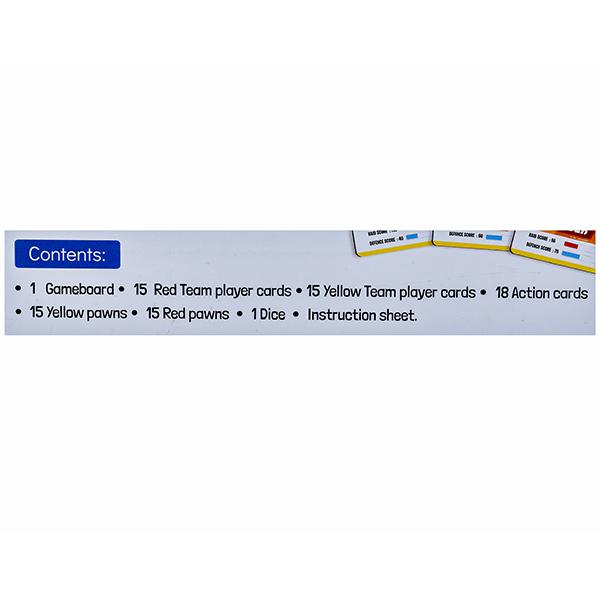 Included Components   1X Game board, 15 X Red Team player cards, 15 X Yellow Team player cards, 18 X Action Cards, 15 X Yellow Pawns, 15 X Red Pawns, 1 X Dice, Instruction Sheet