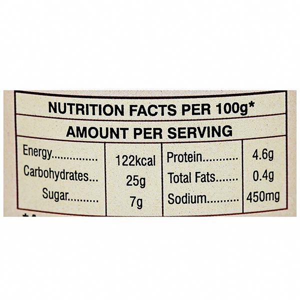 Ingredients- Soaked beans, tomato puree, sugar, starch, common salt, acidity regulator, and mixed spices.