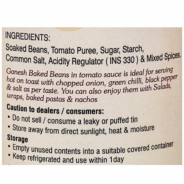 Product Information – Ganesh Baked Beans in tomato sauce is ideal for serving hot on toast with chopped onion,green chilli,black pepper & salt as per taste. You can also enjoy them with Salads,Wraps,Baked Pastas & Nachos.