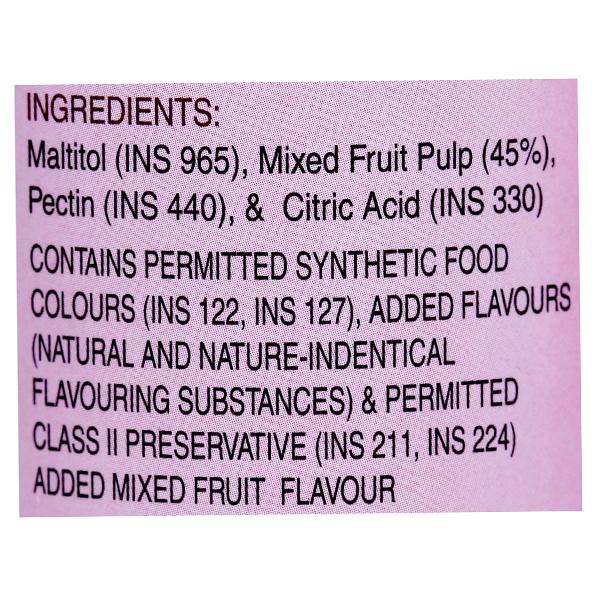 Maltitol(INS 965),Mixed Fruit Pulp(45%), Pectin(INS 440)Water, Citric Acid(INS 330)