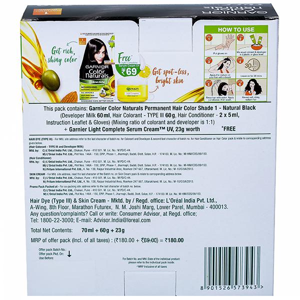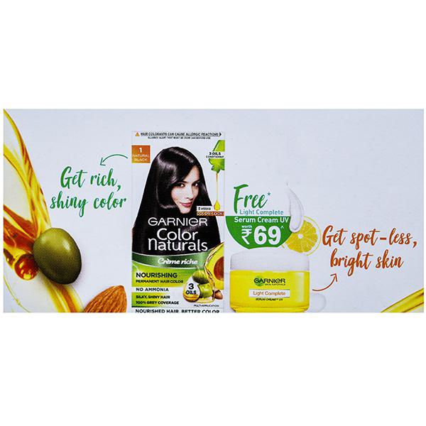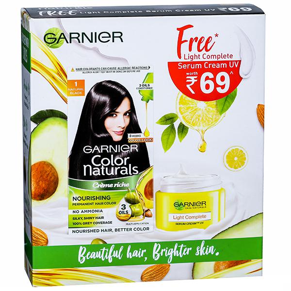 Garnier colour naturals is crème hair colour which gives 100% grey coverage and ultra visible colour with 50% more shine. It has a superior colour lock technology which gives you rich long lasting colour that lasts upto 8 weeks. Colour naturals comes in a range of 8 gorgeous shades especially suited for Indian skin tones.