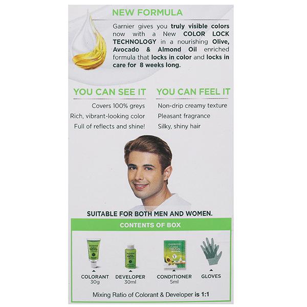 Garnier colour naturals is crème hair colour which gives 100% grey coverage and ultra visible colour with 50% more shine. It has a superior colour lock technology which gives you rich long lasting colour that lasts upto 8 weeks. Colour naturals comes in a range of 8 gorgeous shades especially suited for Indian skin tones.