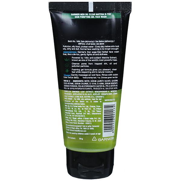 Product Information - Enriched with anti-oxidant matcha, Garnier Men Oil Clear Matcha D Tox Gel face wash cleanses, soothes, moisturizes and balances skin's moisture.