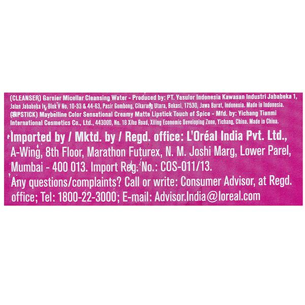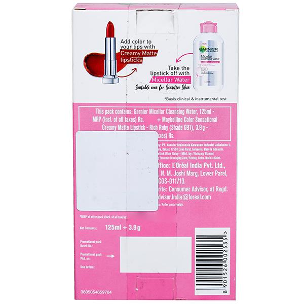 Quantity  - 125 ml + 3.9 g (Garnier Micellar Cleansing Water & Maybelline The Creamy Mattes Lipstick)