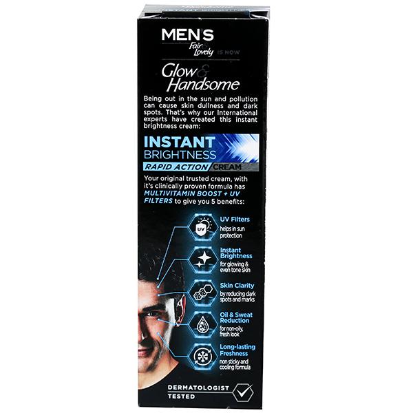 Glow & Handsome Mens Instant Brightness cream is the perfect addition to a man’s skincare routine. Enriched with essential ingredients, the cream protects the facial skin from harsh weather conditions and makes your skin feel soft and well cared for. With the goodness of advanced sun protection, this fairness cream also protect your skin from harmful UV radiations while lightening your skin tone and providing deep nourishment. It's Ideal for oily skin and you can use this twice a day on a cleansed face and neck.