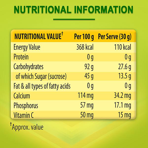 •Available in Regular as well as Delicious Lime, Orange and Mango flavours