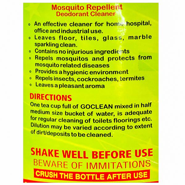 Product Information - Go clean White Phenyl is an effective cleaner for home, hospital, office, and industrial use. it leaves floors, tiles, glass and marble sparkling clean and contains no harmful ingredient. It also helps to repel mosquitoes and provides hygienic environment with a pleasant aroma.
