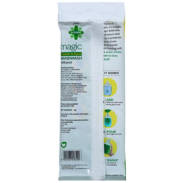 Product Information - Unique powder to liquid format, a first, in the world of handwashes! With Neem which is tough on germs and soothing Aloe Vera makes it gentle on skin. Extremely affordable compared to other handwashes in the market. Mr. Magic handwash is not just green in colour, it’s also green in nature. If all Indian households that use liquid handwash refills switch to Godrej Protekt Mr. Magic refills, it would result in a greener, better world. So, add, pour, shake and wash to stay protected.