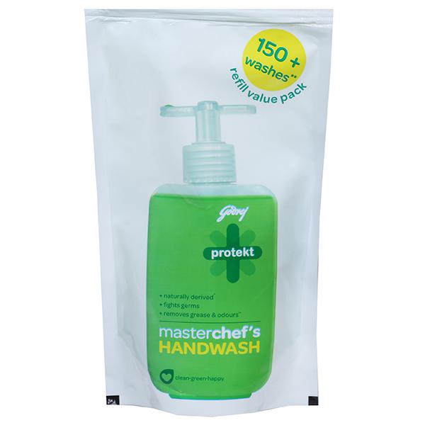 Godrej Protekt Master Chef’s Handwash made with naturally derived ingredients, that fights with germs and removes grease & tough smells. It is gentle on hands and has no triclosan.