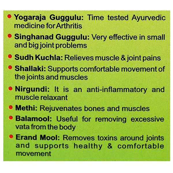 Ingredients - Yogaraja Guggulu, Singhanad Guggulu, Sudh Kuchla, Nirgundi, Methi, Balamool, Erand Mool.