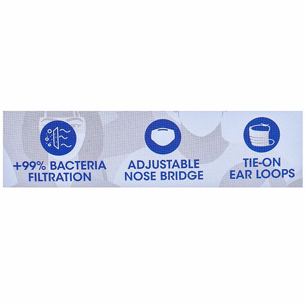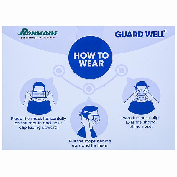 Guard Well (Romsons) is a 3-layer disposable face mask that comes with a melt-blown filter technology that guarantees 99% bacteria filtration efficiency. It offers utmost protection and comfort with the tie-on earloops that can be adjusted accordingly.