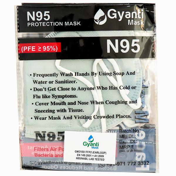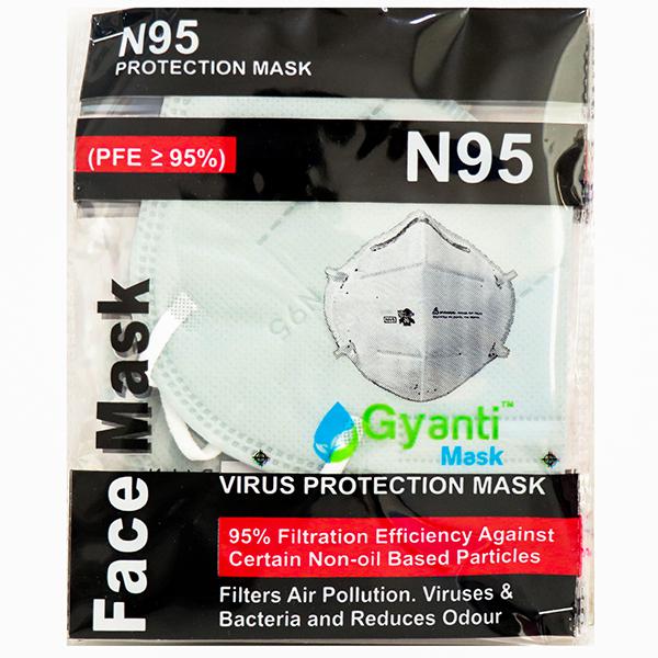 Gyanti Mask N95 Protection Mask Earloop provides 95% filtration efficiency against certain non-oil based particles. It can filter air pollution and biological airborne particles such as viruses & bacteria and help to reduce odor.