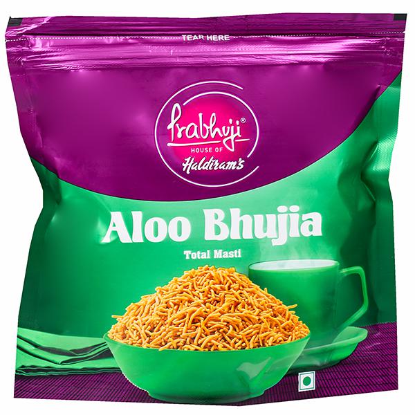Aloo bhuji is the popular variants of the good old bhujia, this one’s made from potatoes and gram flour – mashed together and golden fried into crispy strands. This snack is moderately spiced with red chilli, tomato and turmeric powder along with an assortment of other spices like coriander, black pepper, nutmeg, dry ginger, mint, cinnamon etc. Haldiram Alu Bhujia is a great tea time snack for munching on while chatting with a friend or lounging in front of a TV.