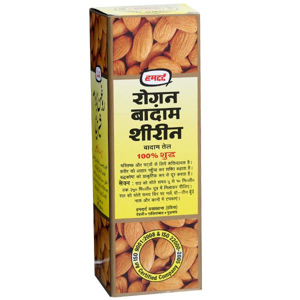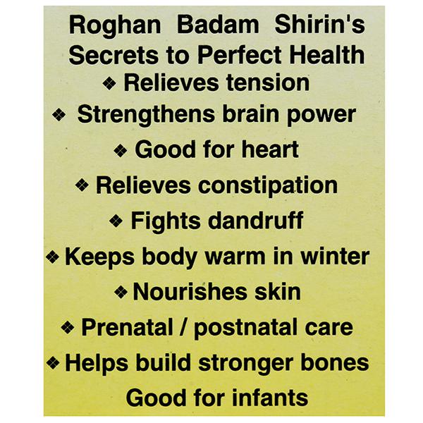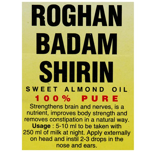Roghan Badam contains pure almond oil, useful in treating constipation, cholesterol, dandruff etc.