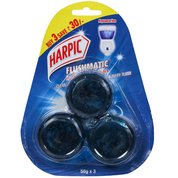 Harpic Flushmatic Aquamarine In Cistern Toilet Cleaner (Save Rs.30/-) 3 x 50 g