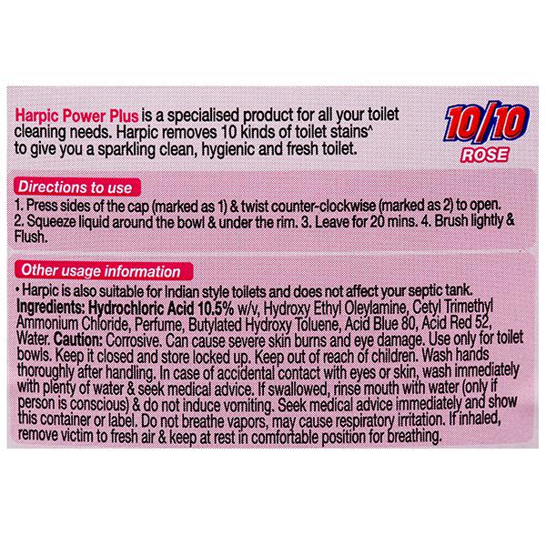 Product Information - A specialized all-in-one product, Harpic Power Plus is the ultimate one stop solution for all your toilet cleaning needs. Unlike ordinary toilet cleaners Harpic Power Plus has a thick liquid formula that clings to the toilet surface to clean deeply from the rim to the u-bend. Cleaning the toilet is often the most hated and one house chore that tops the list of the worst house chores we have to complete. But an effective, reliable, strong and disinfecting toilet cleaner can make a big difference in getting this chore done with lesser frustration and quicker results. Harpic is one such product that can make your toilet cleaning task a little less annoying and tiring. It’s quick action and superior results are unbeatable!Moreover, it also disinfects your toilet and now, with the improved Harpic technology, you get a sparkling clean, hygienic and fresh toilet with every use of Harpic. Harpic Power Plus toilet cleaner is many times better than the ordinary bleach, acid and phenyl, when it comes to cleaning, fragrance as well as germ kill. Regular use of Harpic toilet cleaner prevents the build-up of stains in the toilet bowl and keeps it visibly clean with effective removal of germs in the toilet. Harpic’s strategically bent bottleneck shape lets you pour the liquid into deep corners under the toilet rim, without letting your hands touch giving you all round cleaning. Harpic is also suitable for Indian style toilets and does not affect your septic tank. .