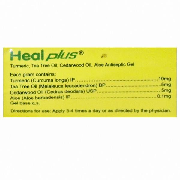 Heal Plus is a Turmeric, Tea Tree Oil, Cedarwood Oil, and Aloe Antiseptic Gel that gives protection against infection.