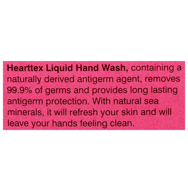 Hearttex Liquid hand wash, containing a naturally derived antigerm agent, removes 99.9% of germs & provides long-lasting antigerm protection. With natural sea minerals, it will refresh your skin & will leave your hands feeling clean.