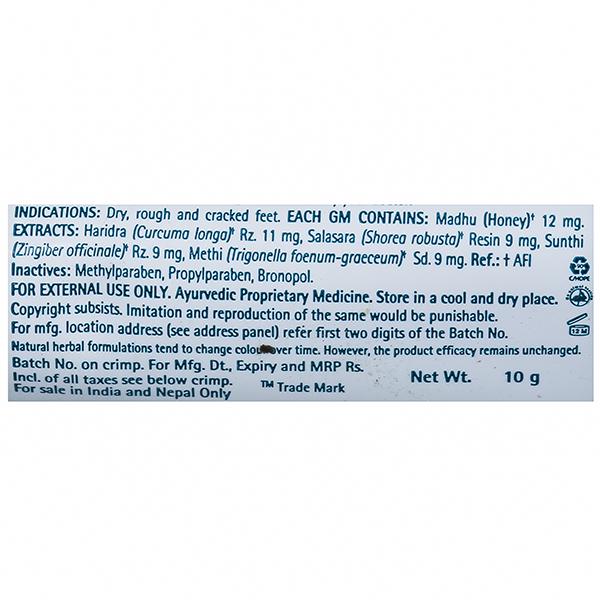 Himalaya Footcare cream has a rich formulation containing Sal Tree, Honey, Turmeric, Fenugreek, and Ginger.